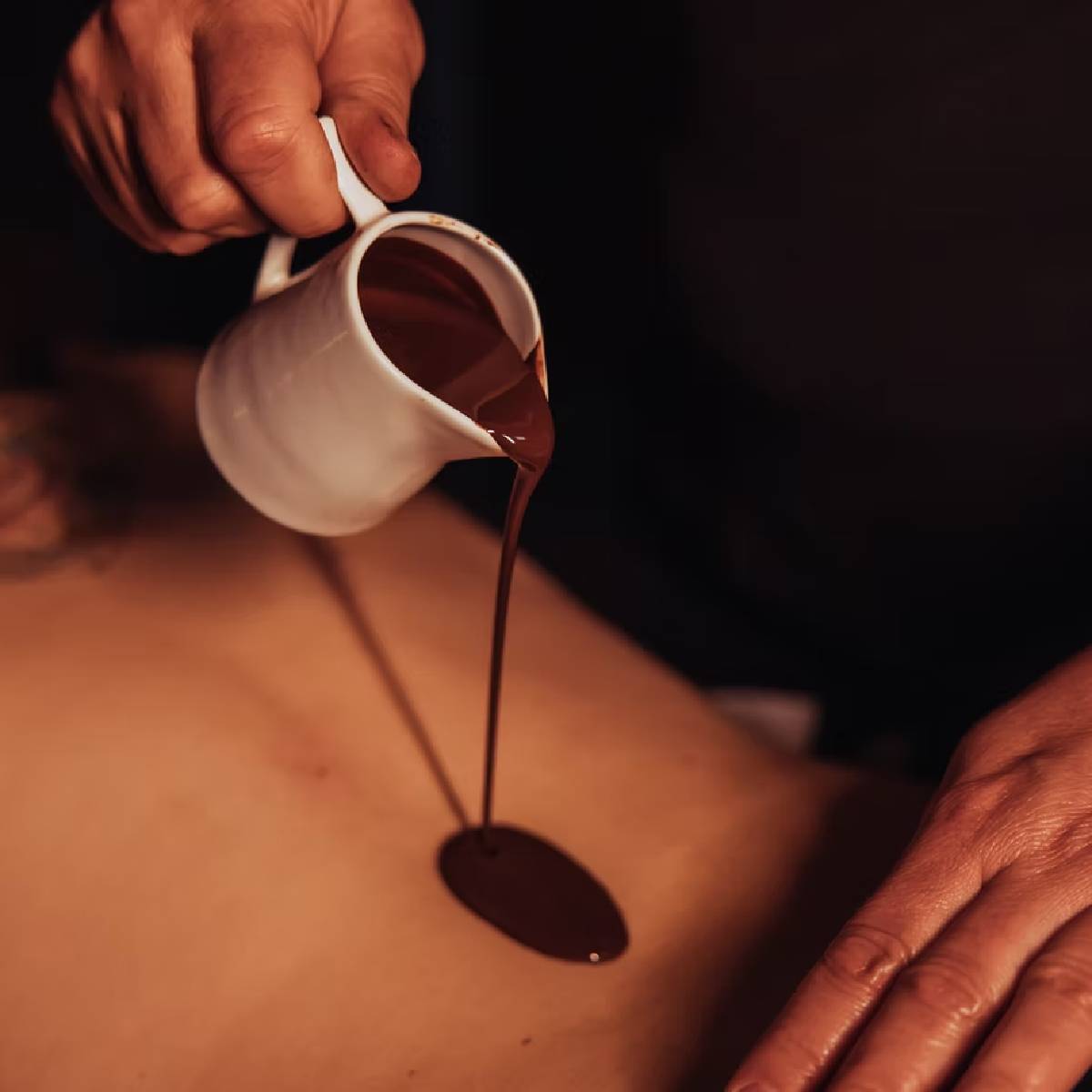 Masaż gorącą naturalną czekoladą. Zabieg pozwala nie tylko uzyskać pozytywne efekty odbijające się korzystnie na ciele, ale również przynosi psychiczne ukojenie. Czekolada wykorzystywana w zabiegach działa silnie odprężająco i regenerująco. Odpowiada za poprawę krążenia krwi, redukcję nadmiaru tkanki tłuszczowej oraz zmniejszenie widoczności cellulitu. Czekolada stanowi także źródło polifenoli – silnych przeciwutleniaczy, które wymiatają wolne rodniki, przeciwdziałając między innymi przedwczesnemu starzeniu się organizmu.